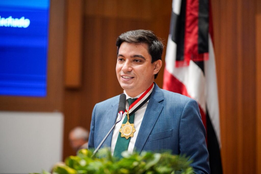 Em Sessão Solene realizada nesta quinta-feira (16), no Plenário Nagib Haickel, a Assembleia Legislativa do Maranhão concedeu a Medalha do Mérito Legislativo “Manuel Beckman” ao diretor-presidente da Agência de Desenvolvimento do Maranhão (Investi – Maranhão), Cauê Ávila Aragão, e ao secretário de Estado de Governo, Márcio Ribeiro Machado.